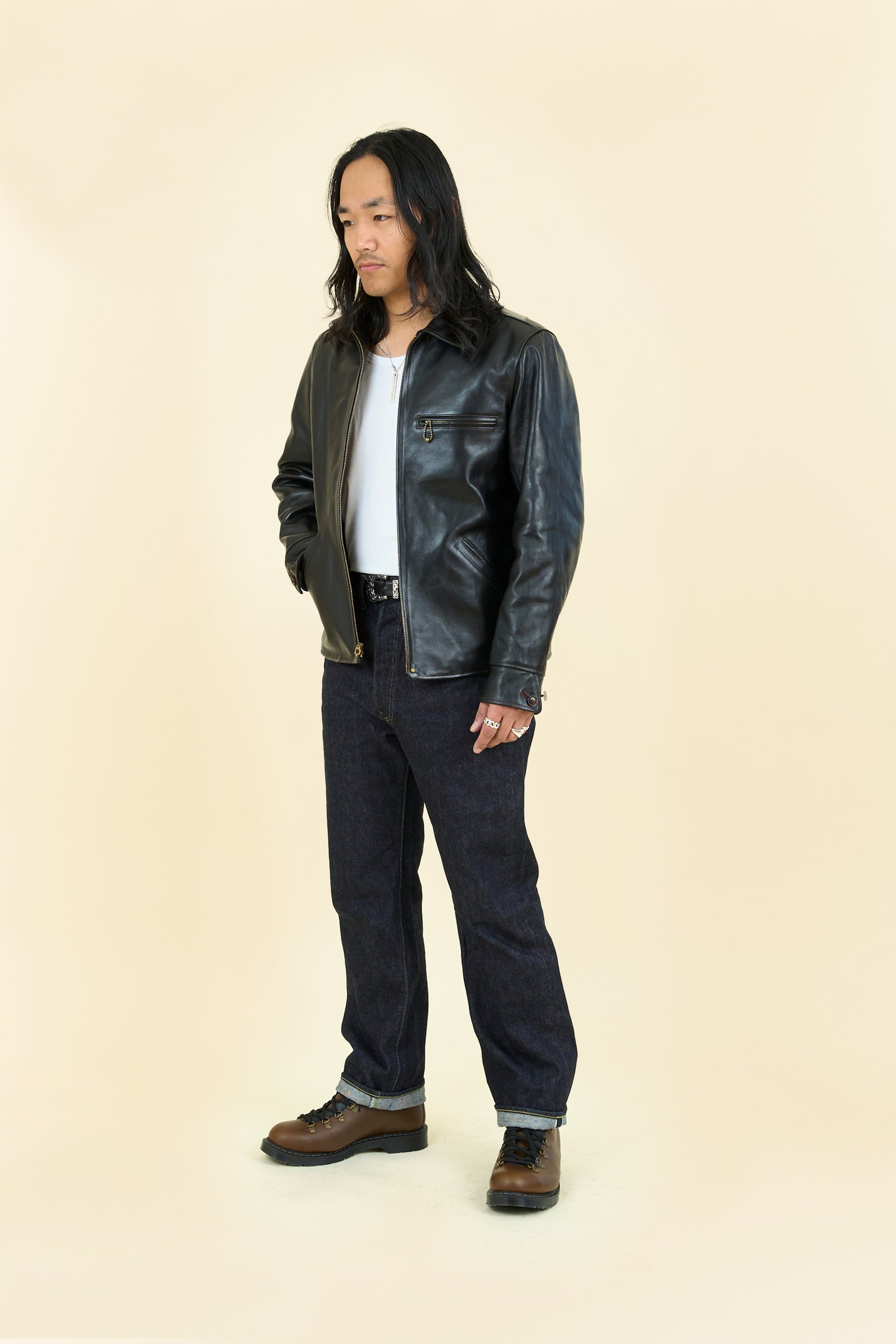 This jacket from Japanese leather masters Double Helix is the Classic 1930's inspired by Leather "Sports Jacket" style jackets around the 1930's. The cut has been updated to a more form fitting modern cut. Jacket started to feature zippers instead of button front fastening around this period and the 1930's features a unique "gem" shaped zipper puller that hives it a vintage original feel. The insertion is also quite special as they have to drill holes in the leather to attached the zipper to the hem of the jacket.
