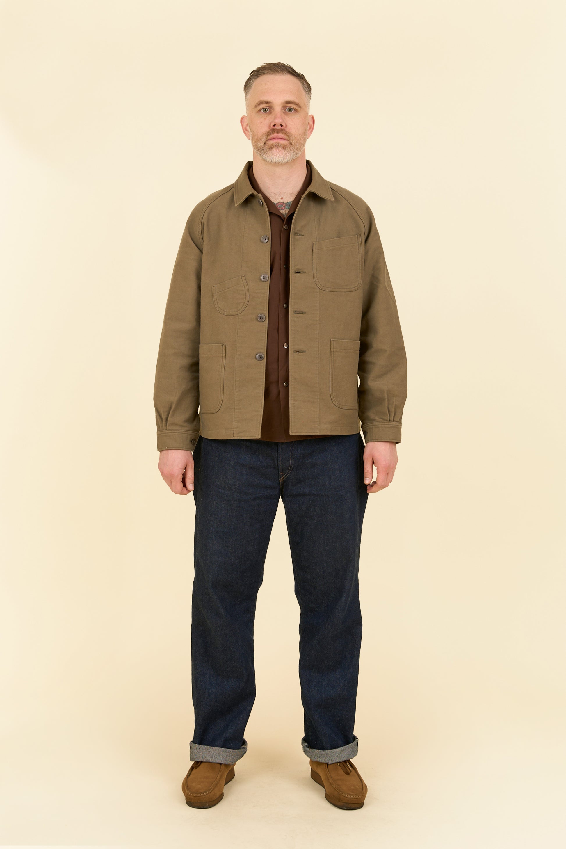 The Pherrow's Nappa Jacket blends elements of French and Japanese workwear, taking cues from the “nappa clothing” once worn by rail workers of the former Japanese National Railways. Cut from washed cotton moleskin, this Japanese work jacket has a soft, lived-in feel that develops natural puckering and creases over time. Practical details like adjusted pocket placement and three-dimensional sleeves add movement and function, while the sturdy moleskin fabric ensures long-lasting wear. A refined take on the classic chore coat, proudly made in Japan.