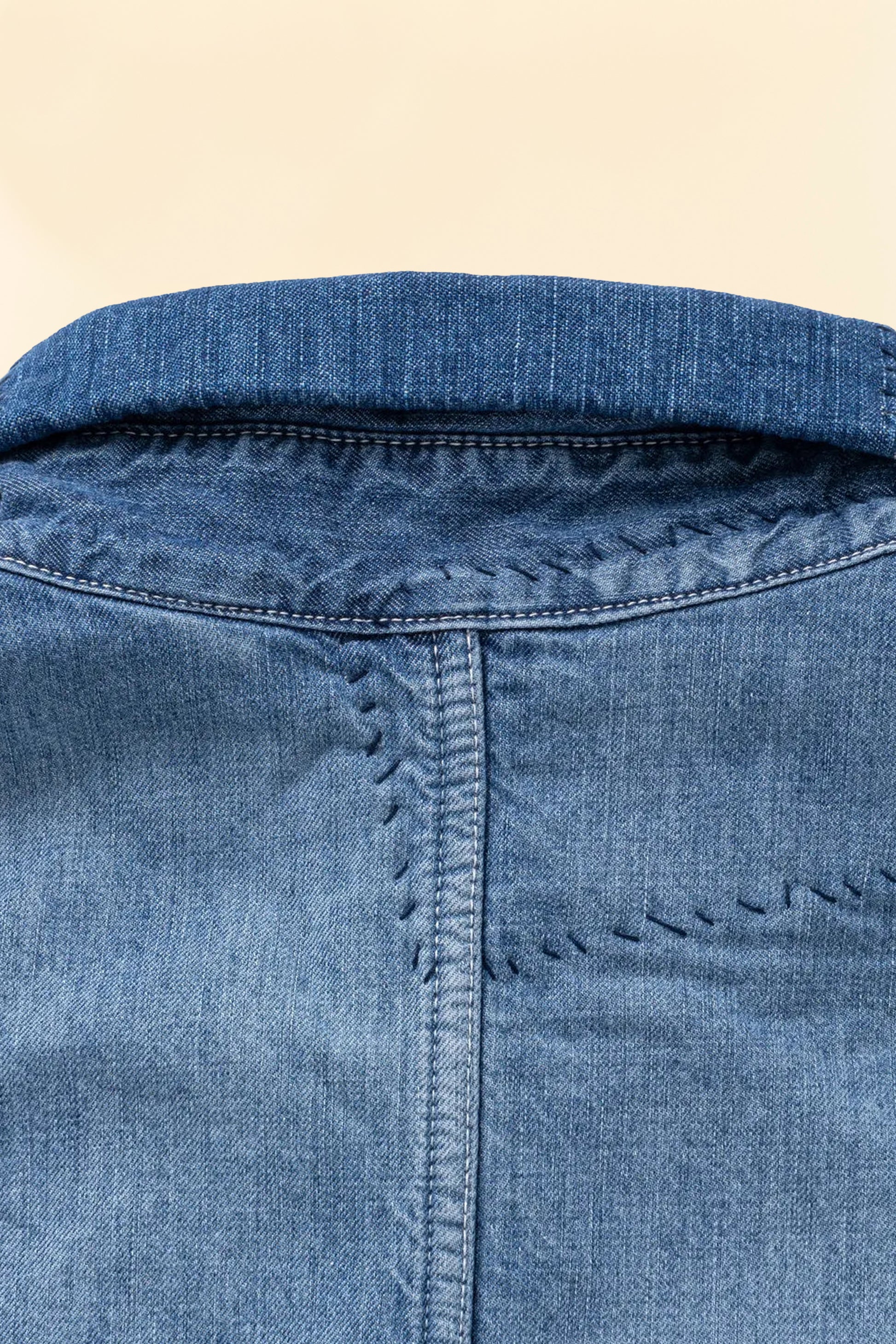 The 40s Denim Coverall combines vintage inspiration with RATS craftsmanship. Lightweight yet structured, the denim develops natural puckering and creases that add character over time. Hand-stitched patches and original engraved buttons highlight subtle details, while the striped cotton lining adds a soft, comfortable interior.