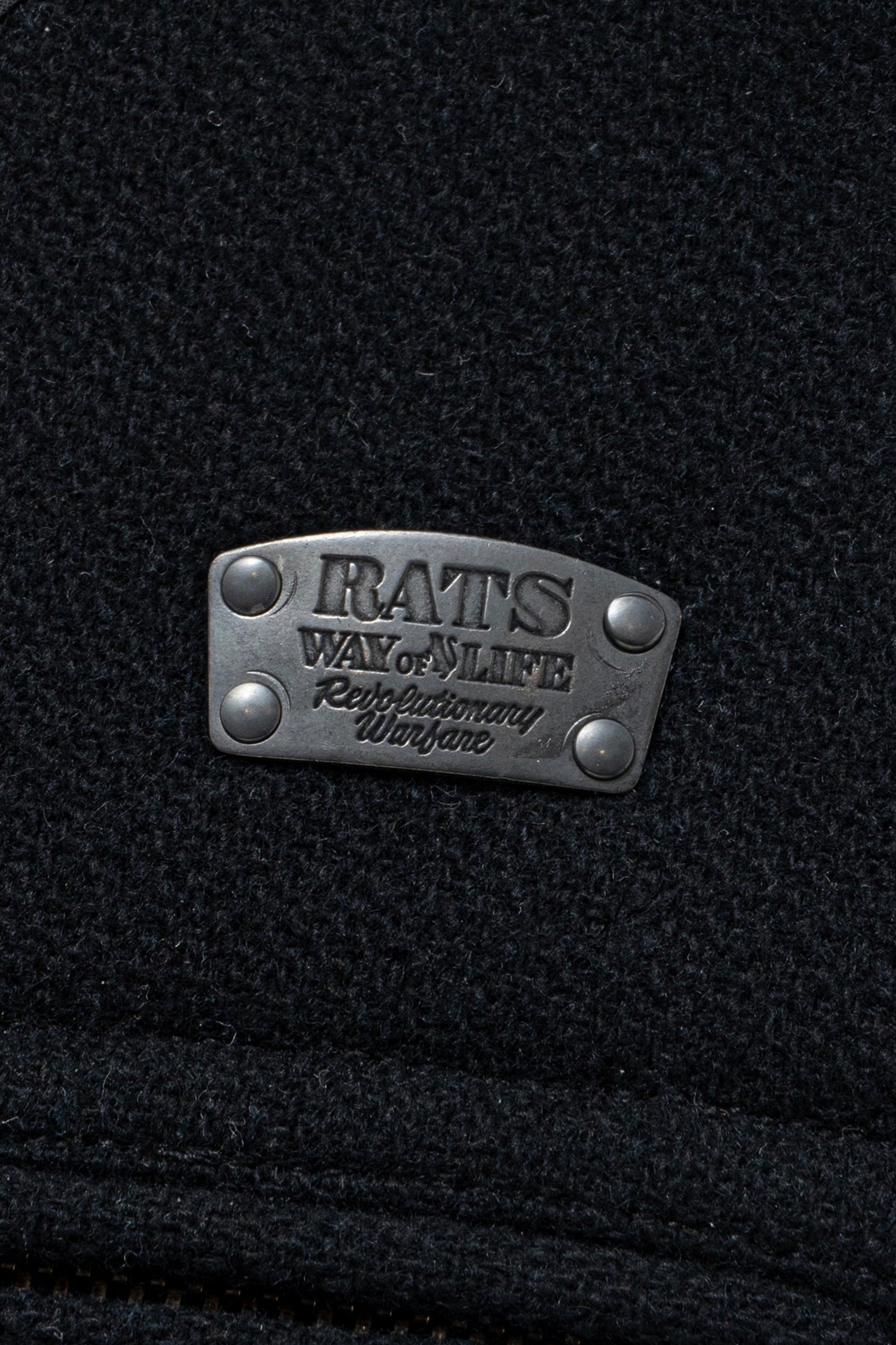- Metal plaque with RATS logo above the left chest pocket.